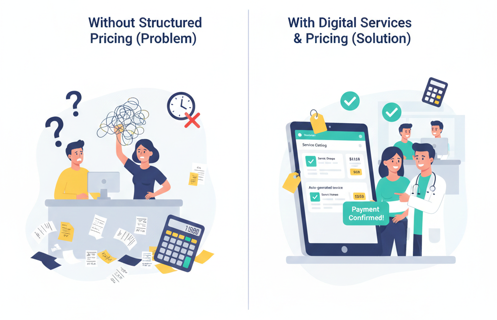 By organizing services and pricing digitally, clinics eliminate confusion, improve billing accuracy, and help patients make informed decisions with confidence.